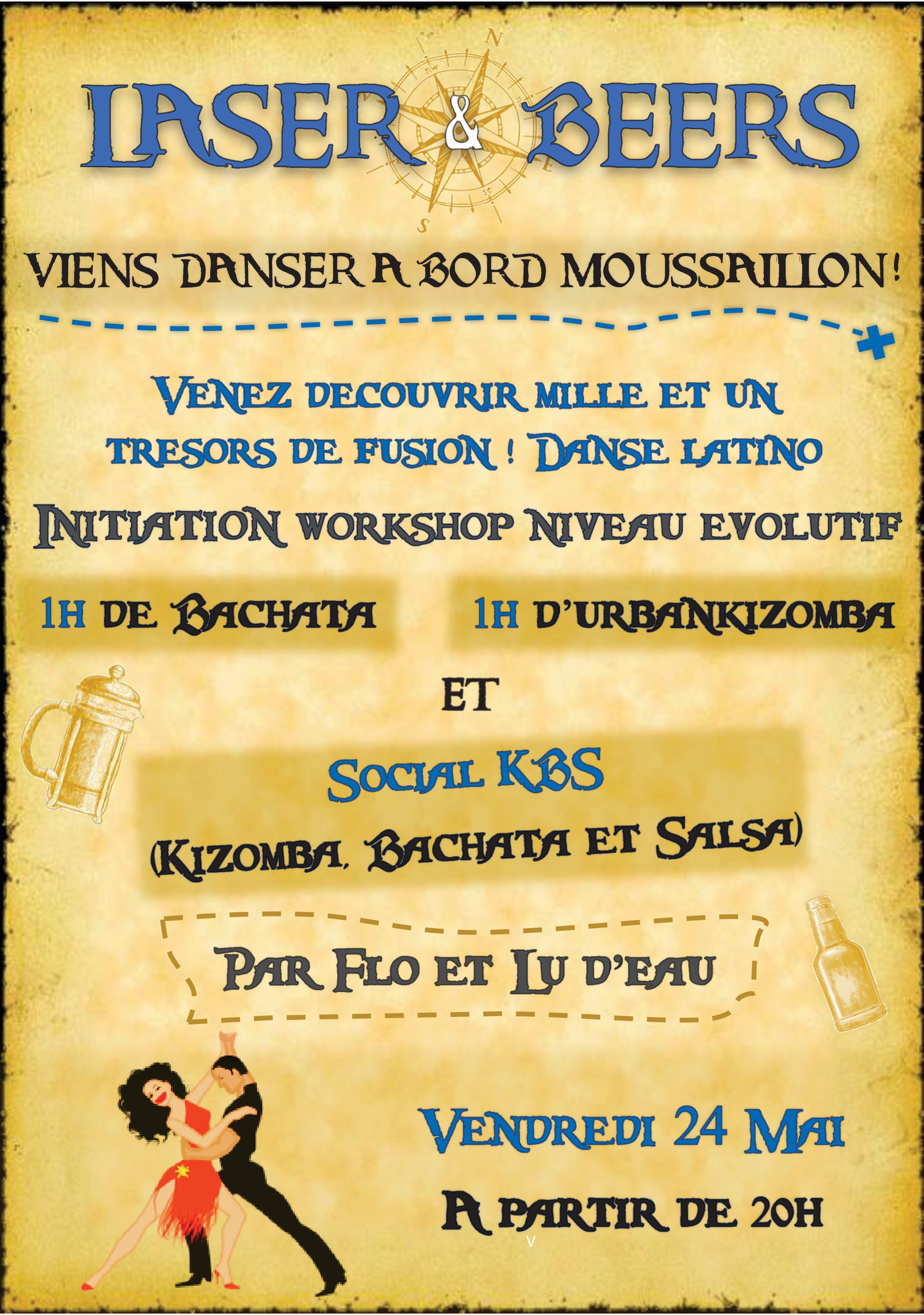 Venez découvrir avec Flo et Lu d'Eau les secrets de la Bachata et de la Kizomba au Laser&Beers le vendredi 24 mai à partir de 20h.